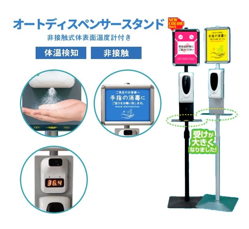 スタンド「非接触式体温計付きオートディスペンサースタンド」を取り扱っています。