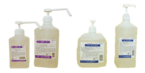 三実通商では、写真の消毒液の他にも持ち運び用小さめの物など、